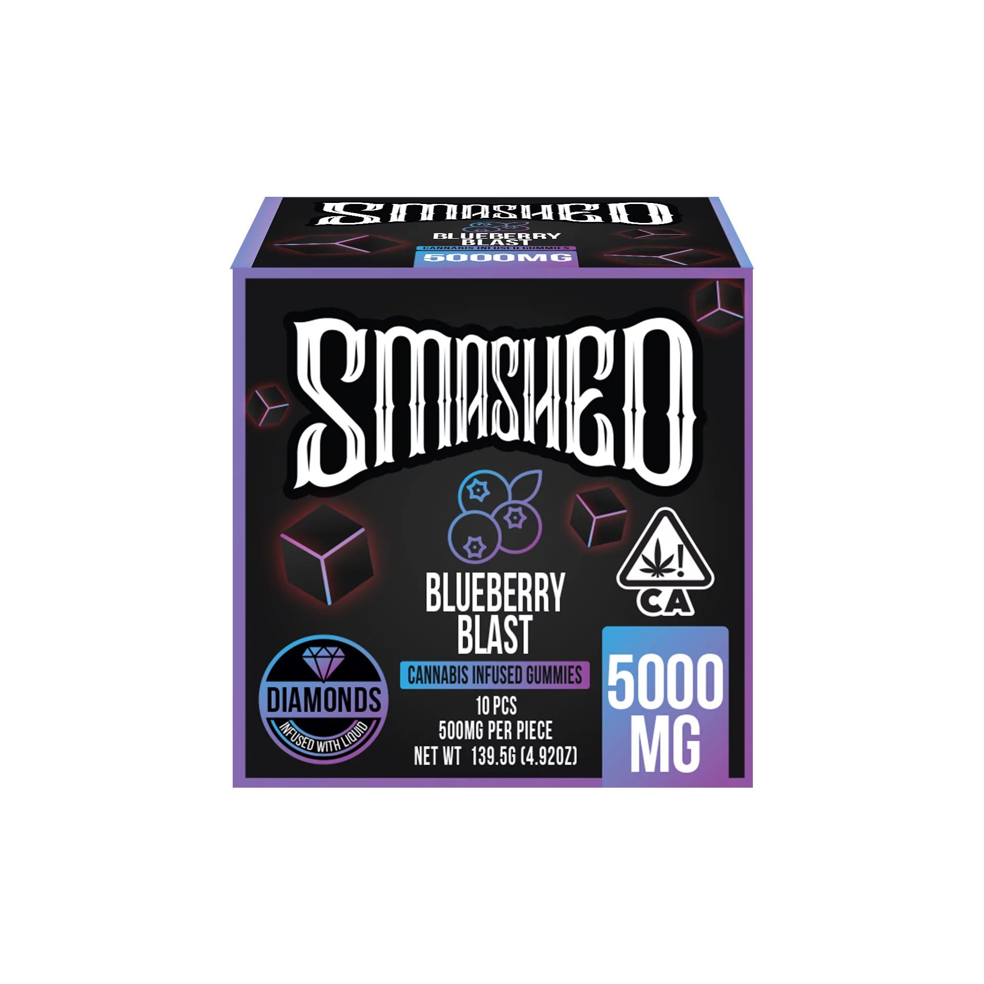 Smashed Liquid Diamond-Infused Gummies, 5000 mg, bring powerful potency and bold flavor in every bite. Made with premium Liquid Diamond THC and enhanced with nano-emulsified technology for a faster onset, these gummies deliver consistent, long-lasting effects.